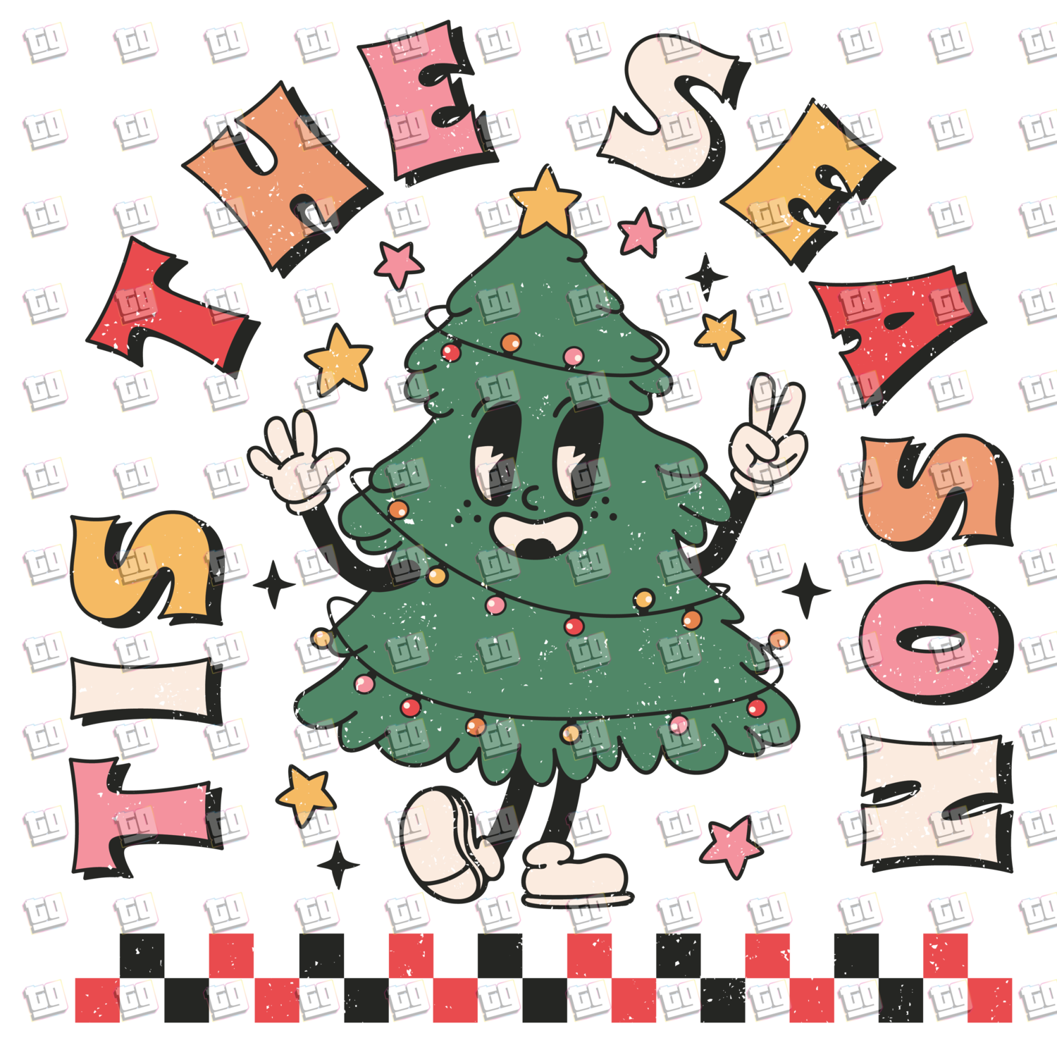 Retro Christmas Tree , 'Tis The Season Distressed- Holidays - DTF Transfer