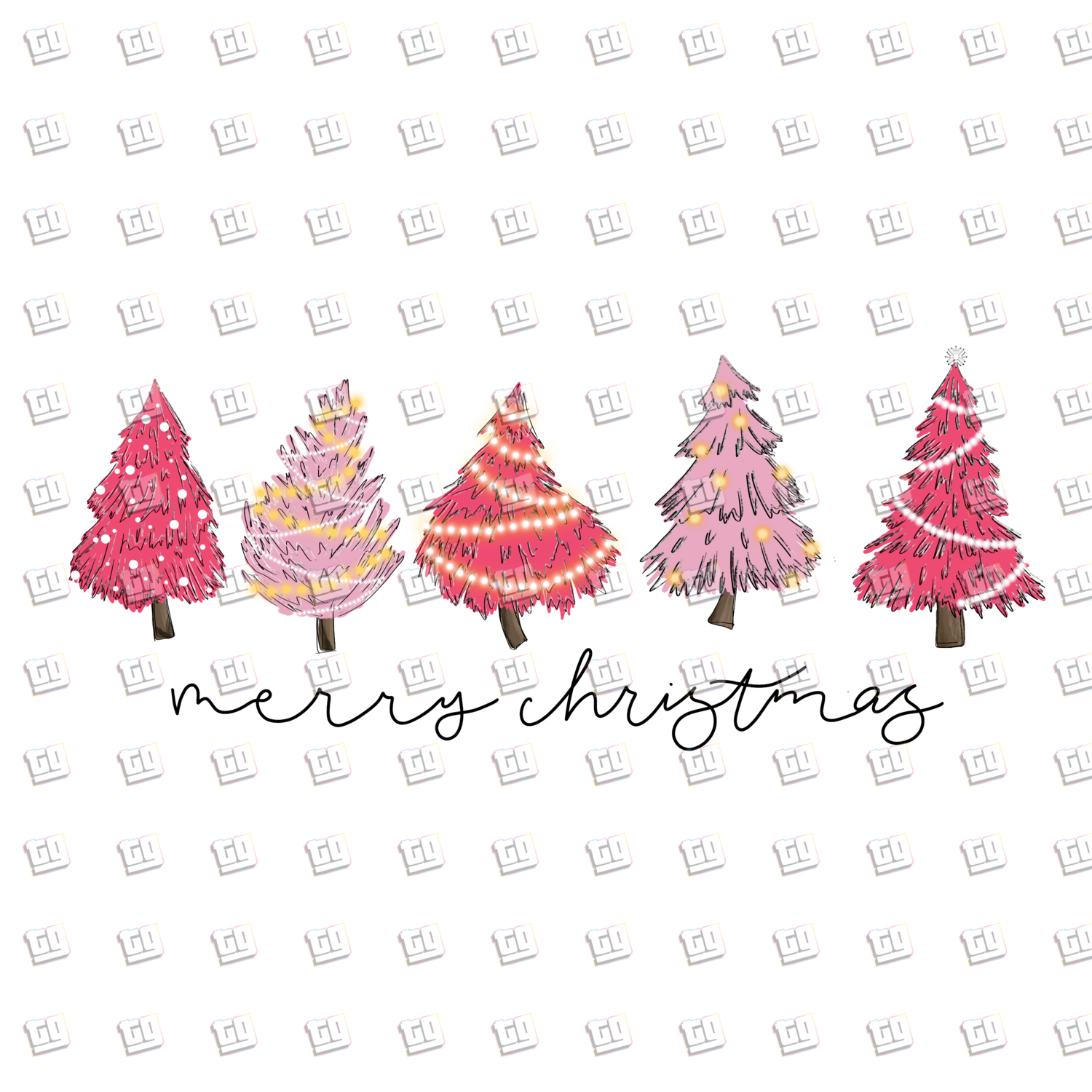 Merry Christmas Pink Trees - Holidays - DTF Transfer
