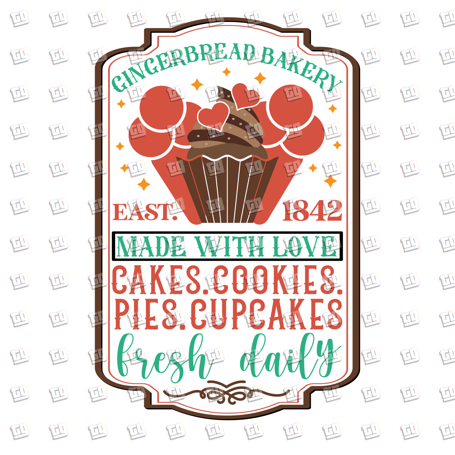 Gingerbread Bakery Fresh Daily (Cookies, Pies, Cupcakes)- Holidays - DTF Transfer