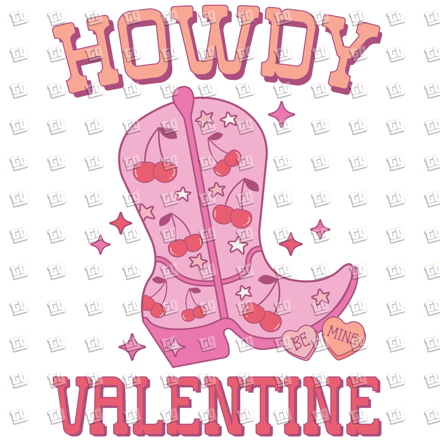 Howdy Western Pink Cowgirl Boot` - Valentines - DTF Transfer