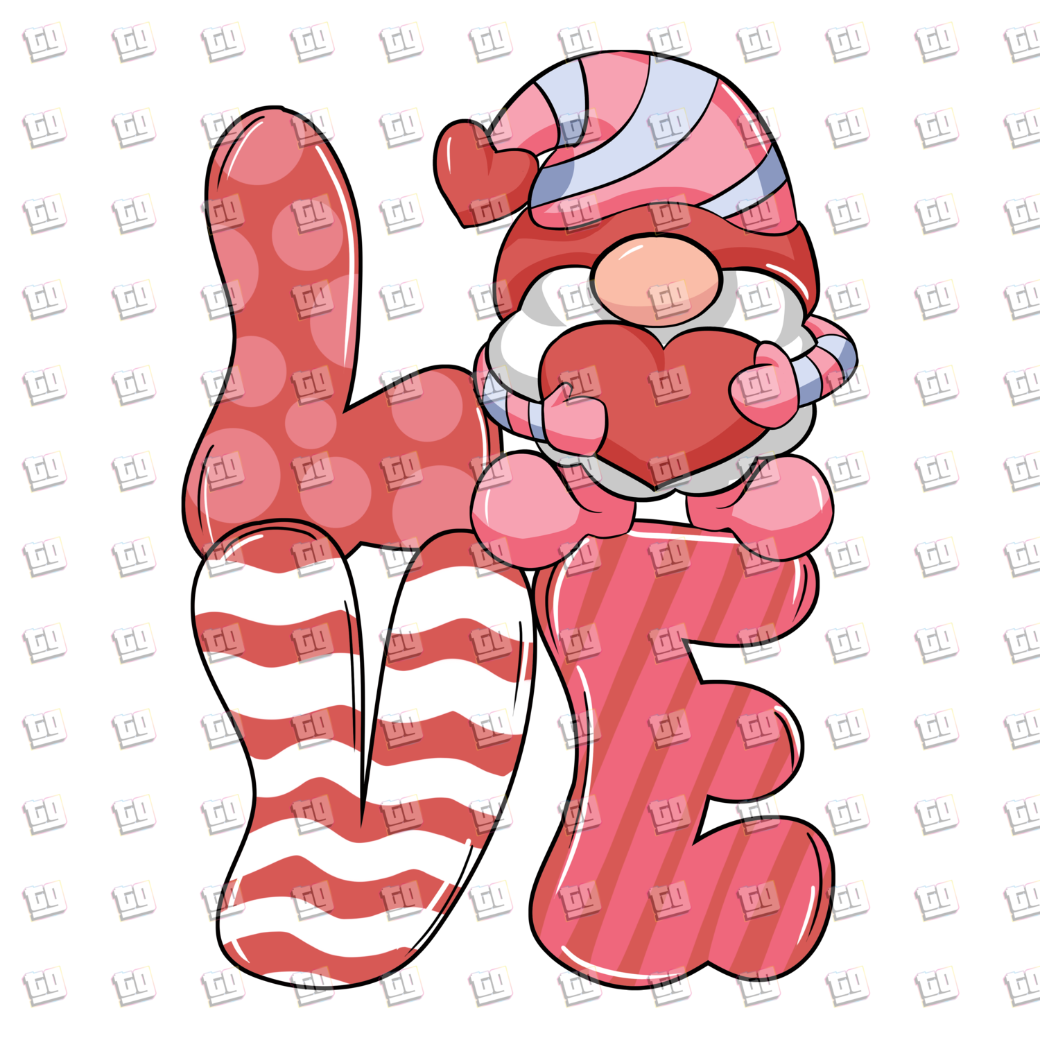 Love Gnome Pink Stripes - Valentines - DTF Transfer