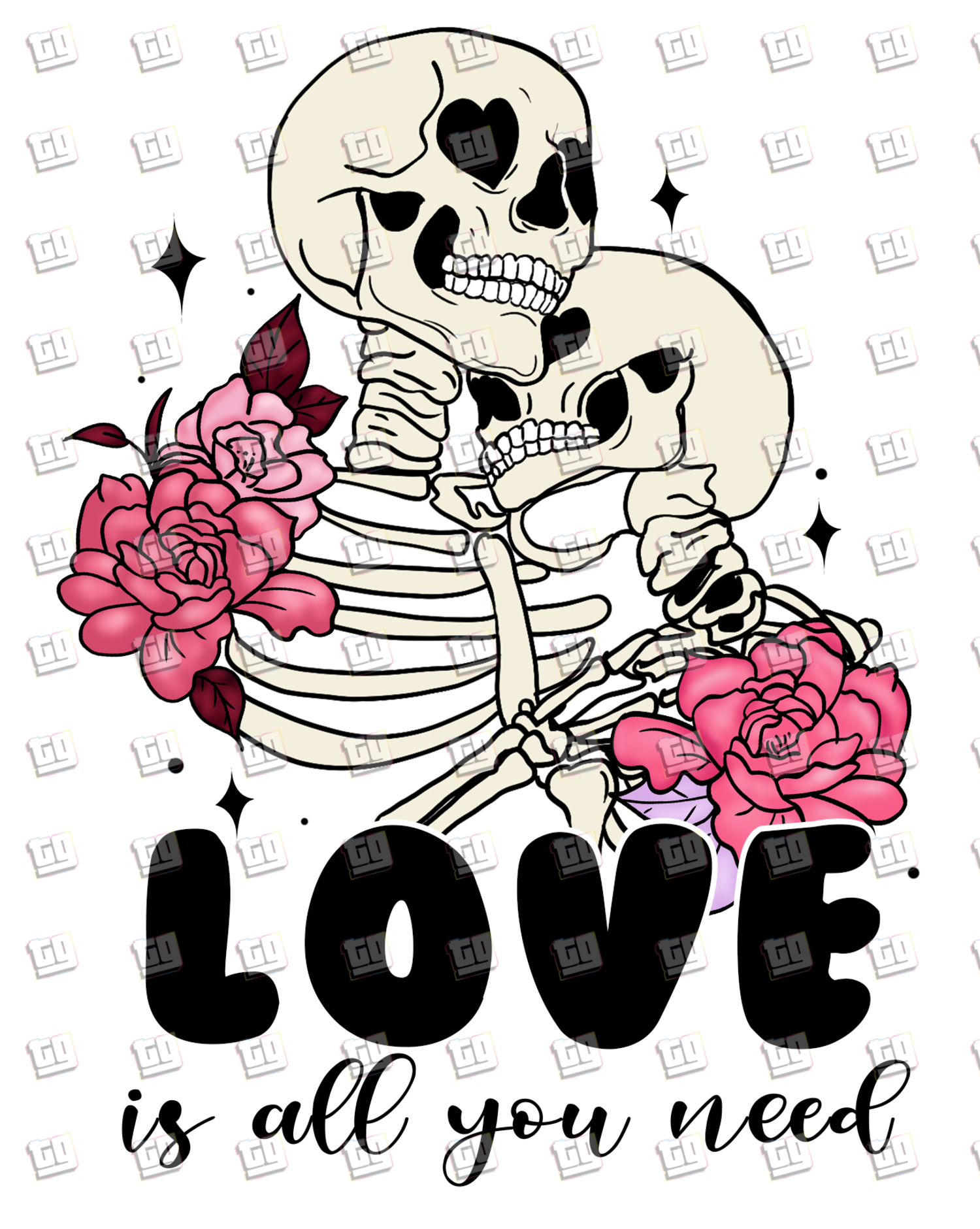 Love Is All You Need (Skeleton Couple With Roses) - Valentines - DTF Transfer