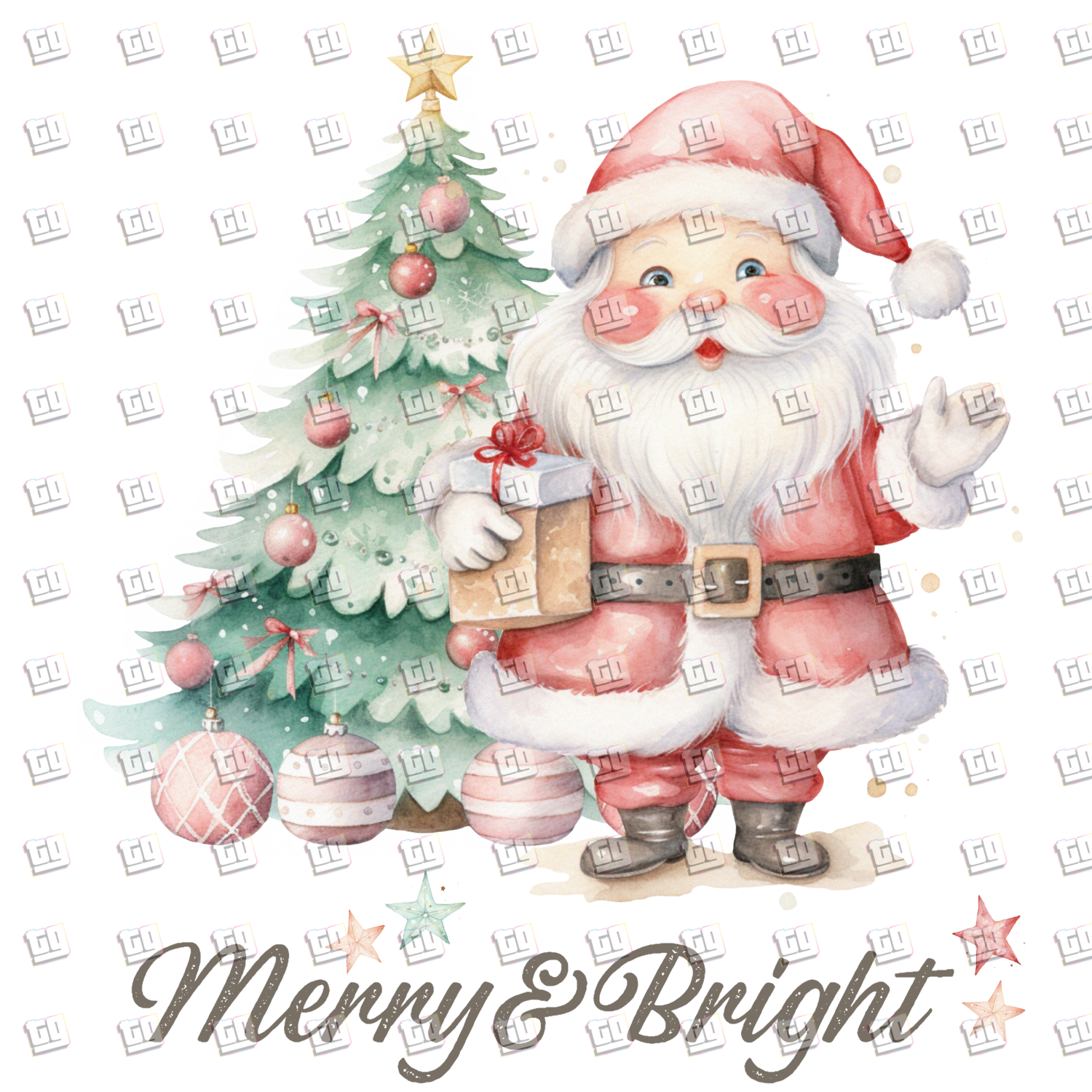 Merry & Bright Santa Clause, Christmas Tree - Holidays - DTF Transfer