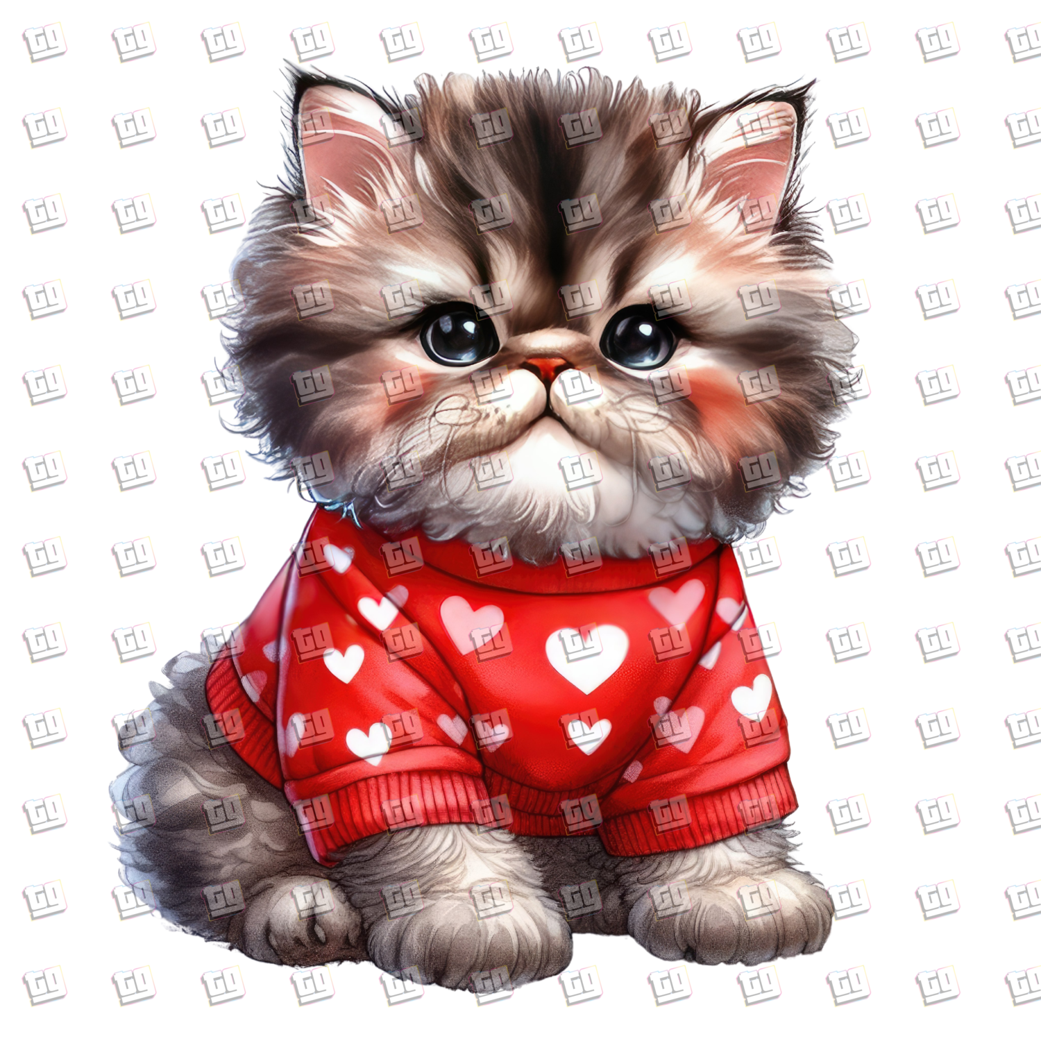 Munchkin Cat With Red Heart Shirt - Valentines - DTF Transfer