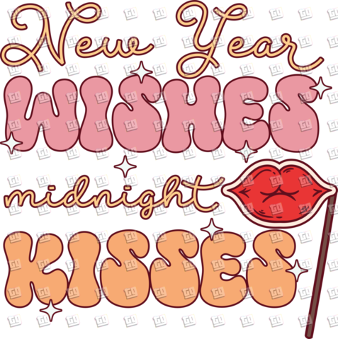 New Year Wishes Midnight Kisses (Lips, Retro) - New Years - DTF Transfer