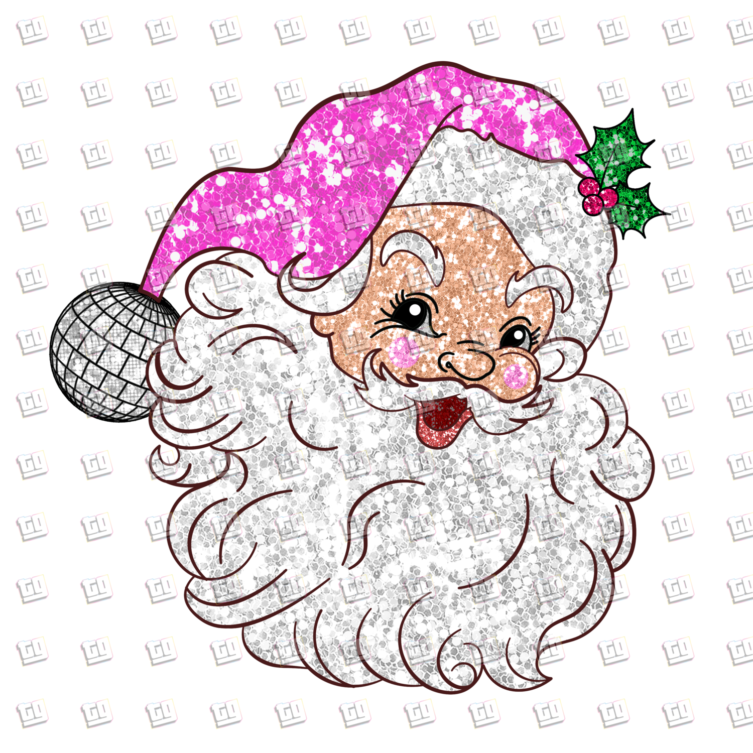 Pink Santa Christmas Sequins Glitter - Holidays - DTF Transfer