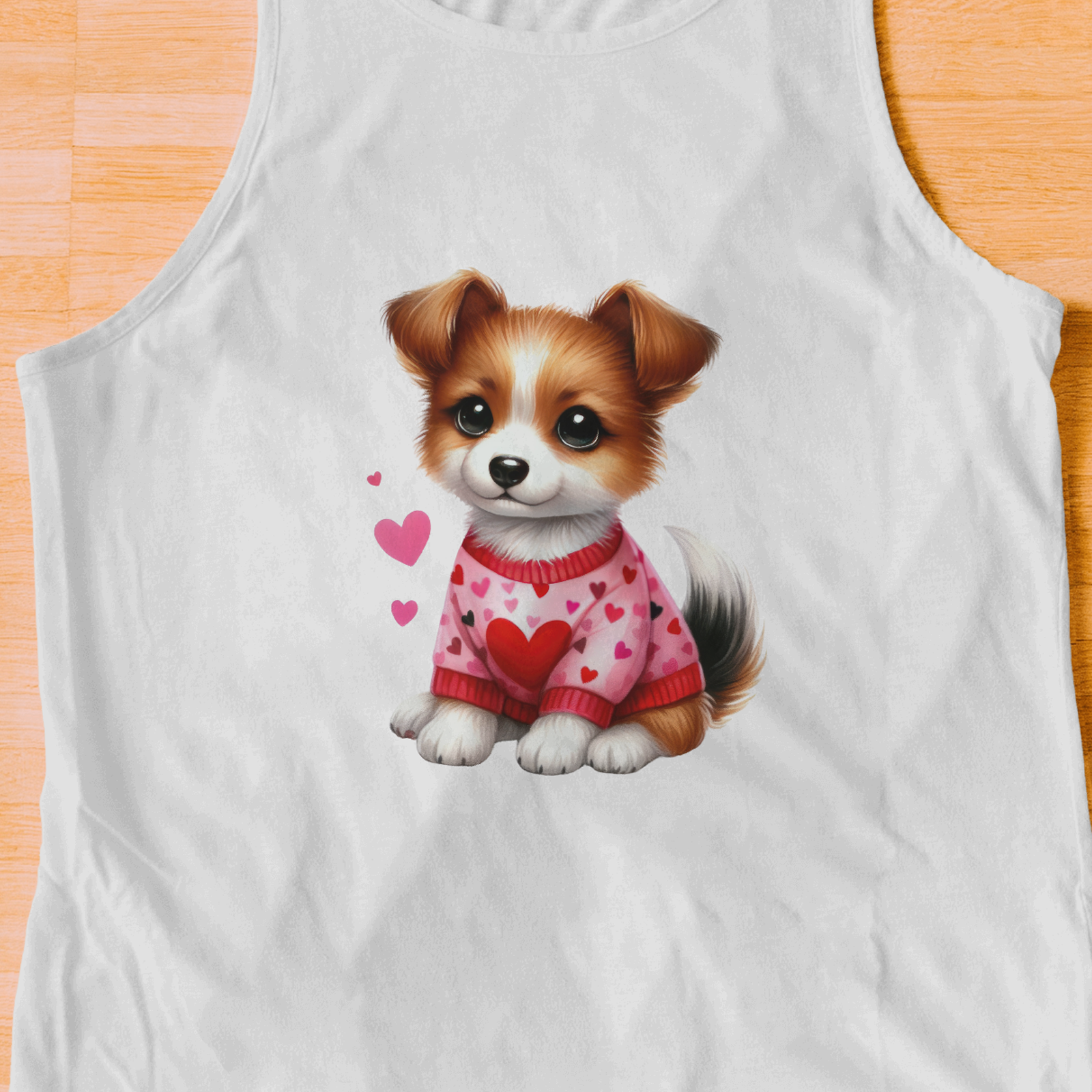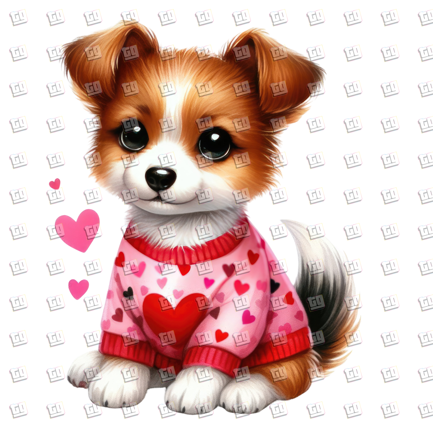 Puppy In Pink Heart Sweater - Valentines - DTF Transfer