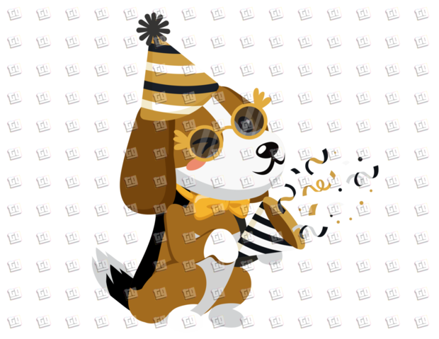Puppy With Party Hat, Glasses, Bow-Tie and Confetti - New Years - DTF Transfer