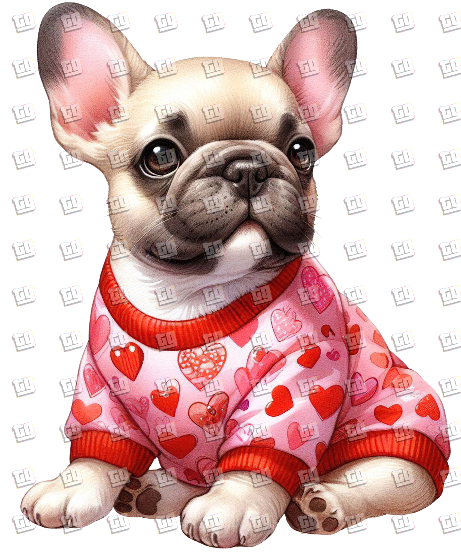 Puppy With Red Sweater (Hearts) V11 - Valentines - DTF Transfer
