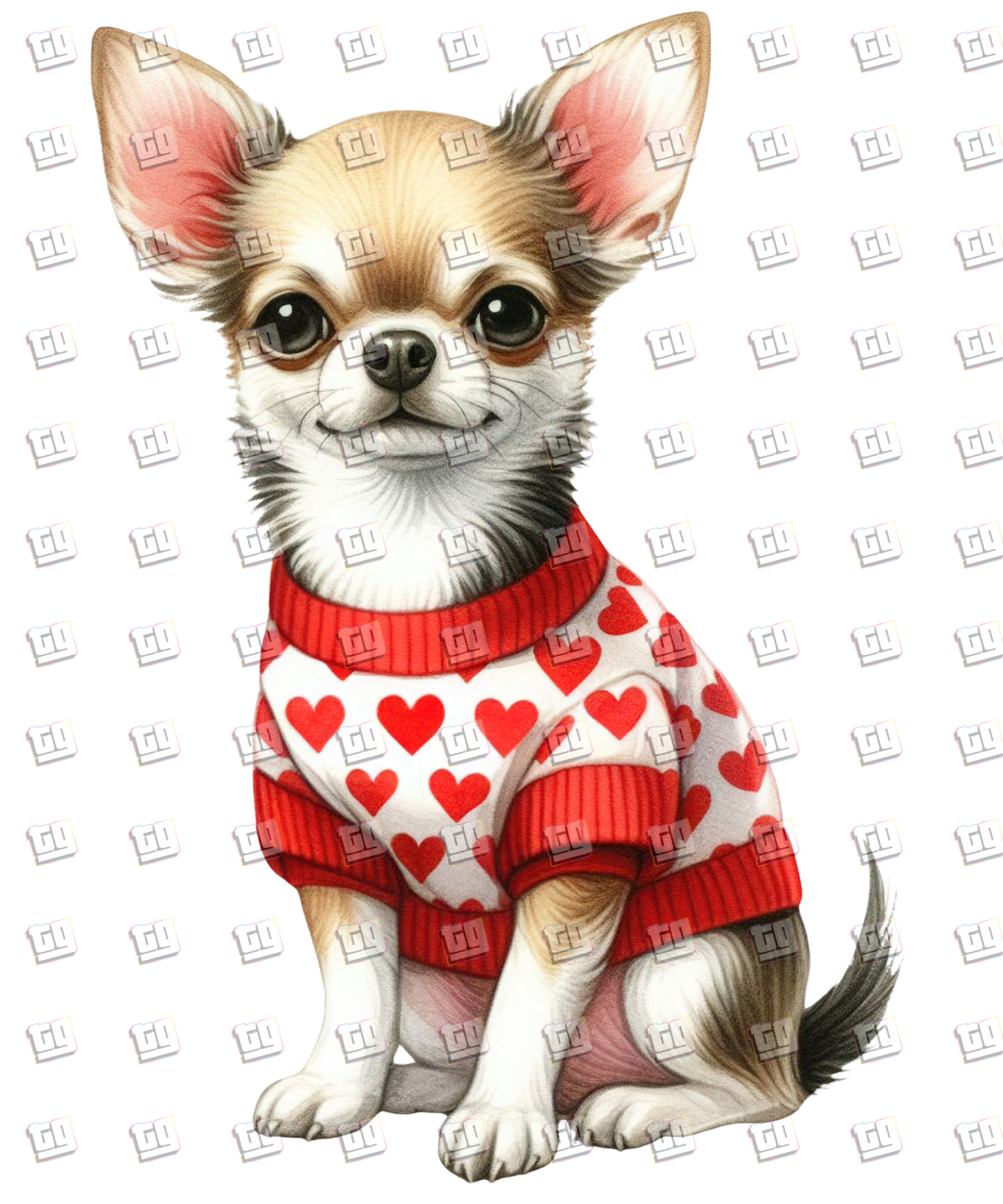 Puppy With Red Sweater (Hearts) V12 - Valentines - DTF Transfer