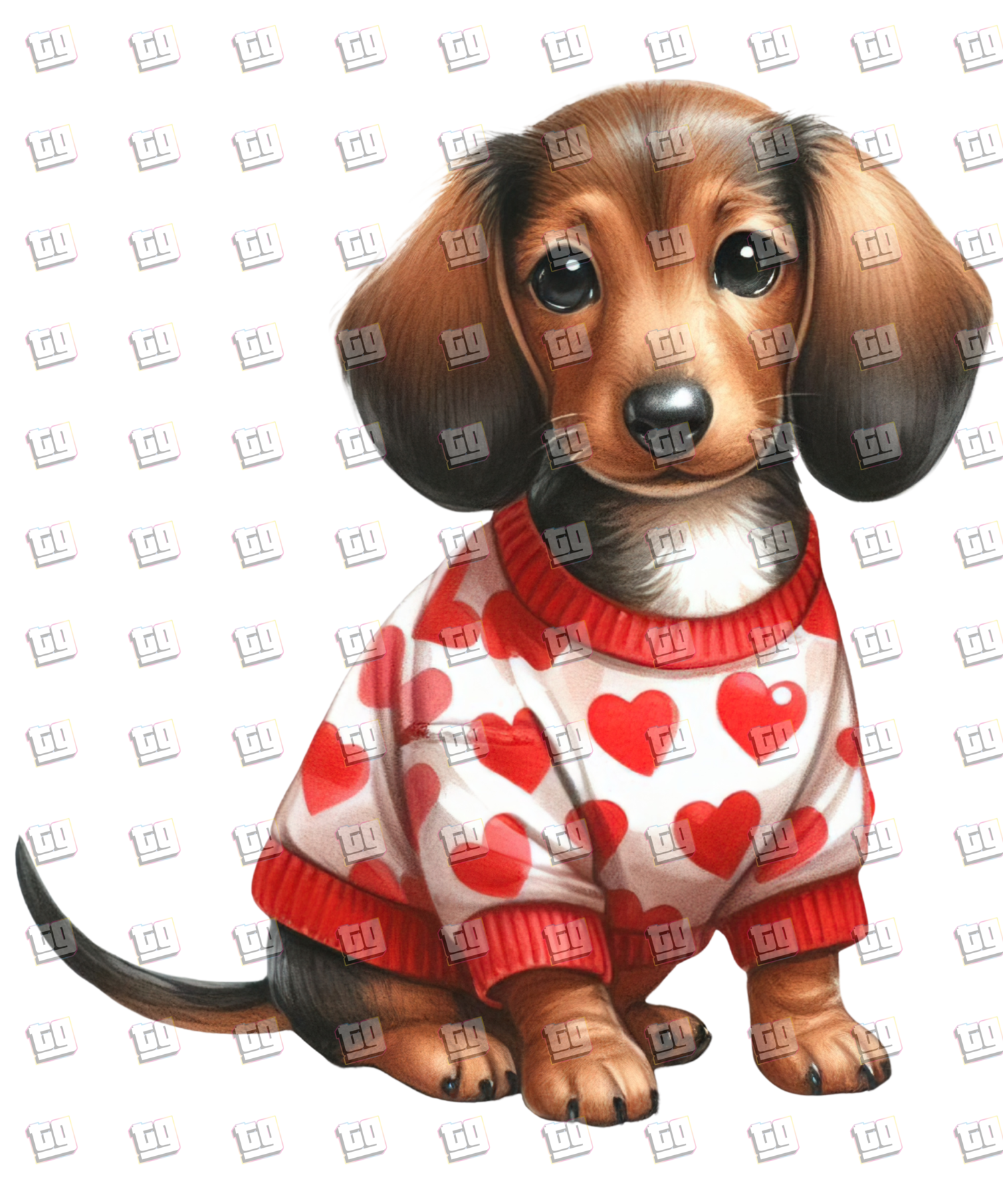 Puppy With Red Sweater (Hearts) V13 - Valentines - DTF Transfer