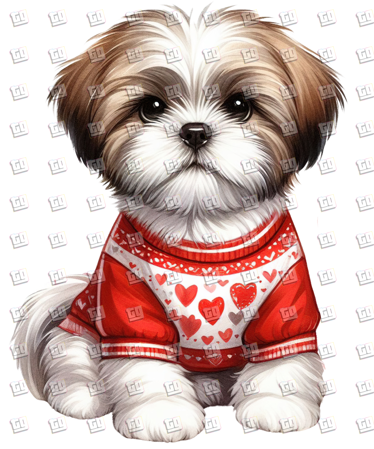 Puppy With Red Sweater (Hearts) V18 - Valentines - DTF Transfer