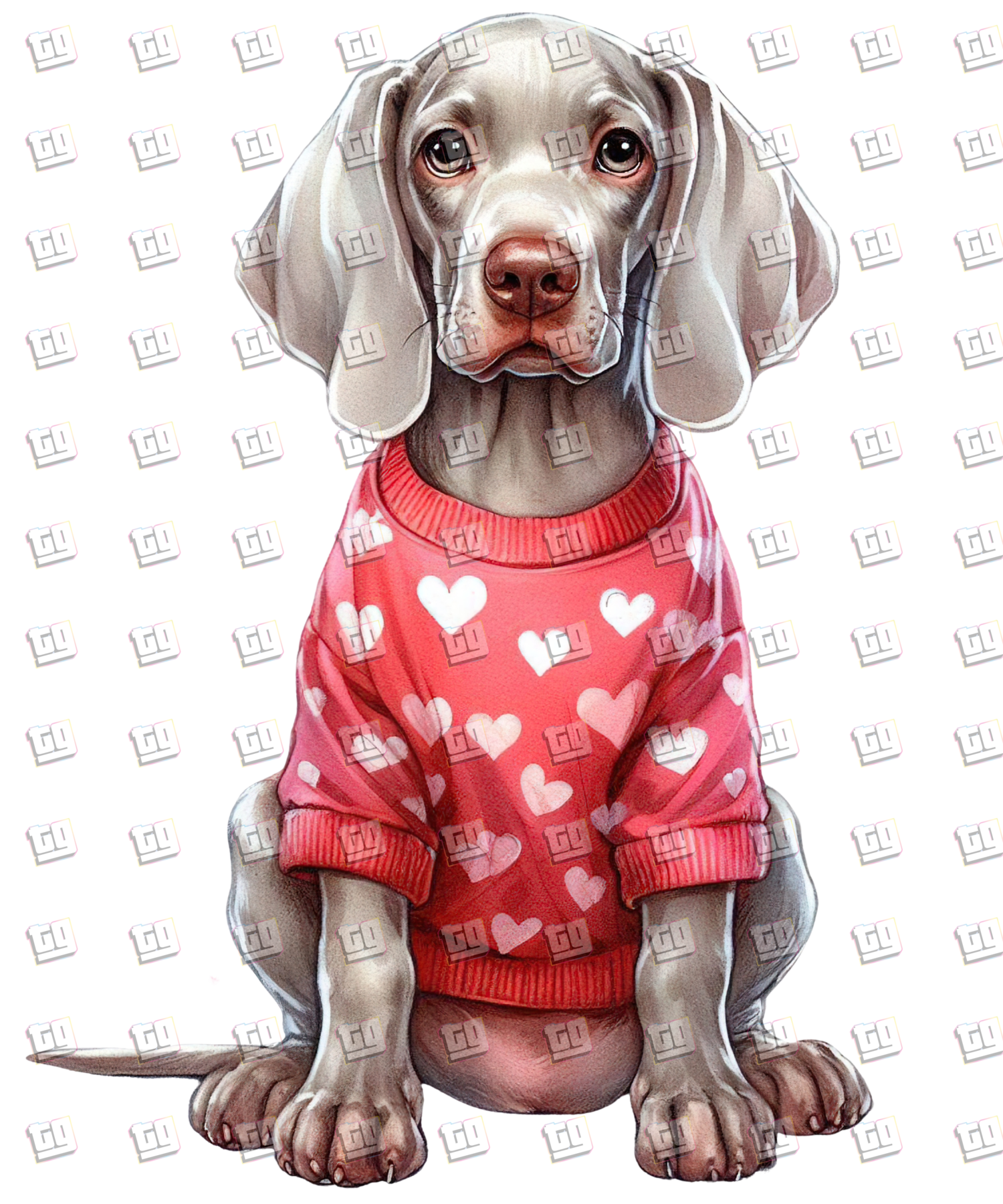 Puppy With Red Sweater (Hearts) V7 - Valentines - DTF Transfer