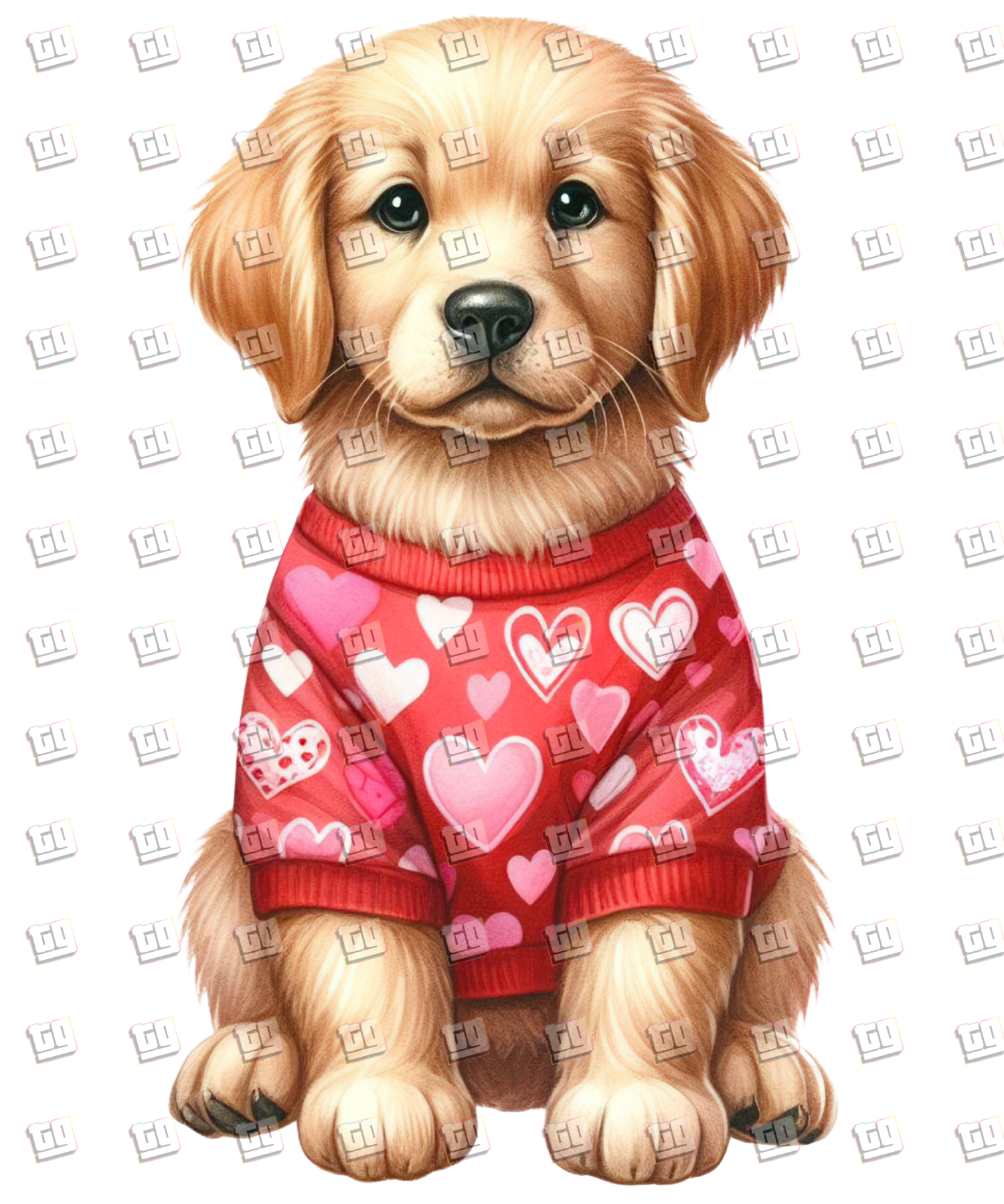 Puppy With Red Sweater (Hearts) V9 - Valentines - DTF Transfer
