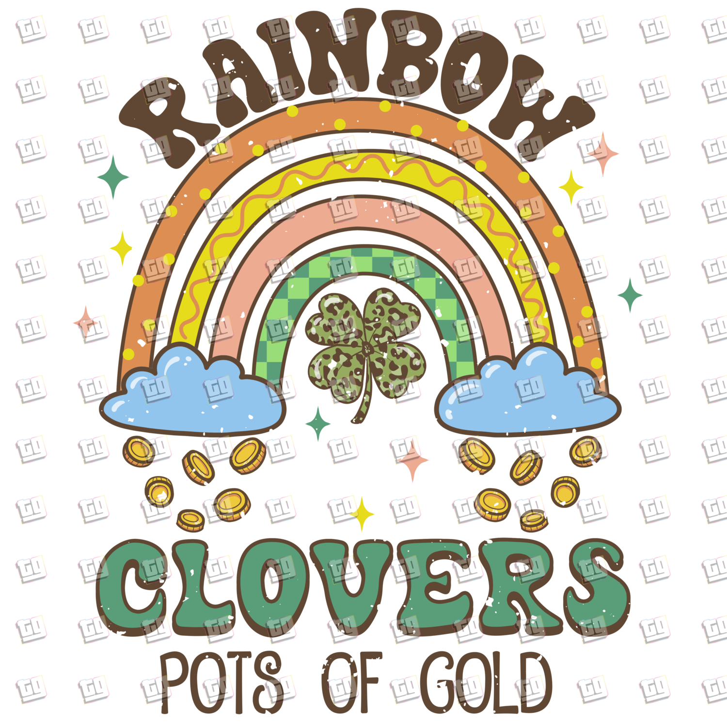 Rainbow Clovers Pots Of Gold - St. Patrick's Day - DTF Transfer