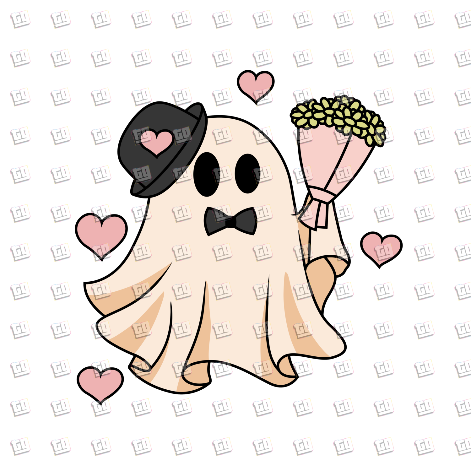 Retro Ghost Top Hat and Bouquet - Valentines - DTF Transfer