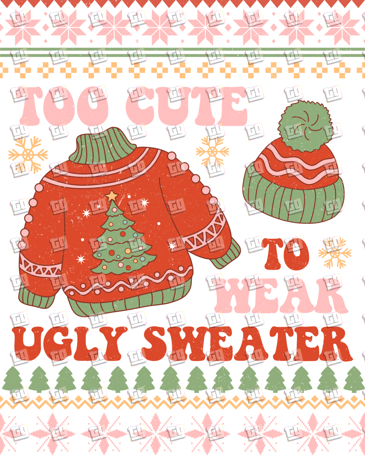 Retro Too Cute To Wear Ugly Sweater (Ugly Christmas Sweater) - Holidays - DTF Transfer