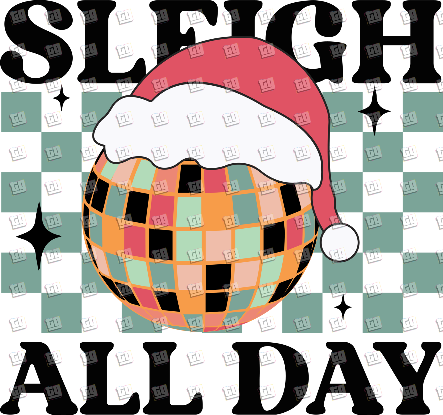 Sleigh All Day (Disco Ball, Santa Hat) - Holidays - DTF Transfer